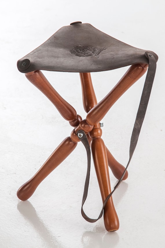 Folding Leather And Wood Tripod Stool By Clevelandnational On Etsy