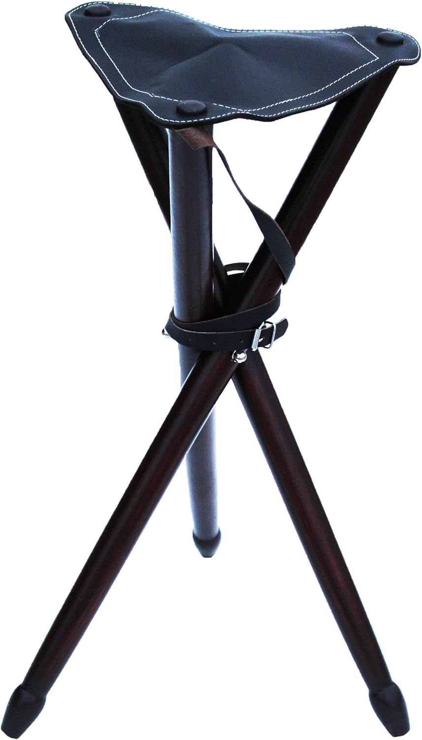 Leather Folding Tripod Camp Stool Chestnut Wood Faulk
