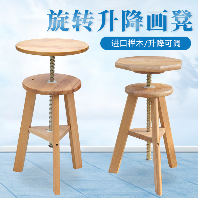 Beech Rotating Lift Stool Folding Chair Wooden Solid Wood Sketch