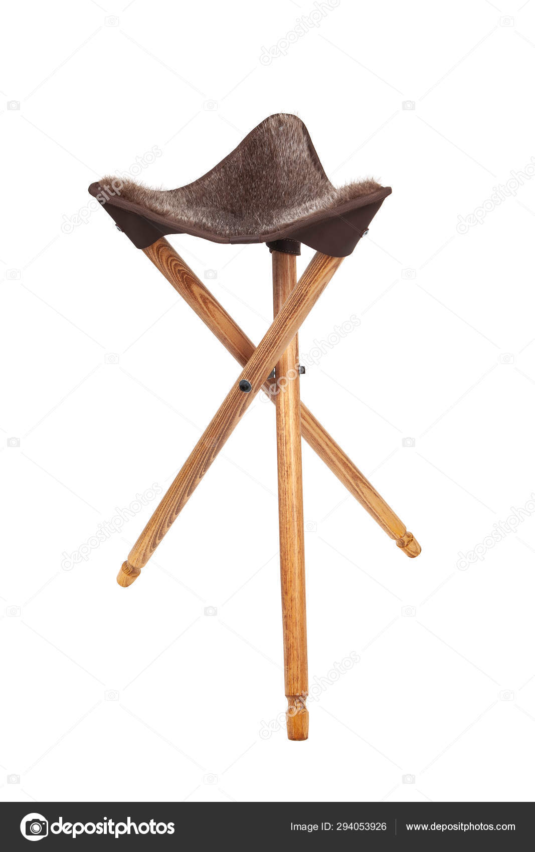 Folding Wooden Hunting Stool Tripod Isolate Stock Photo Edit Now