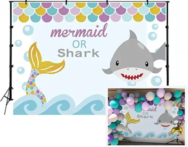 Gender Reveal Party Background Mermaid Or Shark Baby Shower