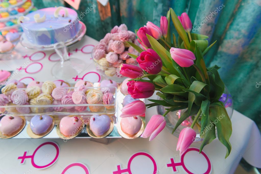 Candy Bar On Gender Reveal Party Delicious Cakes Bouquets Of
