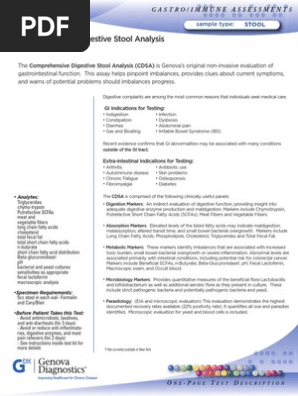 Genova comprehensive digestive stool analysis. The comprehensive digestive stool analysis cdsa is genovas historic stool profile providing an informative and flexible screening of gastrointestinal function. Genova measures metabolomics and can assess the interaction between the microbiome and its host. A second test cdsa 20 was then designed with some markers that supersede the original cdsa.