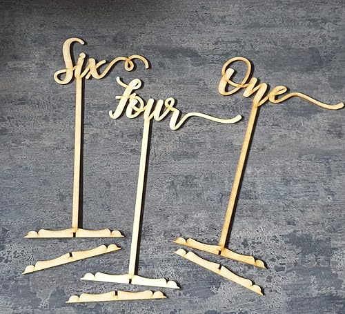 Wooden Table Numbers 1 12 Free Standing Modern Calligraphy