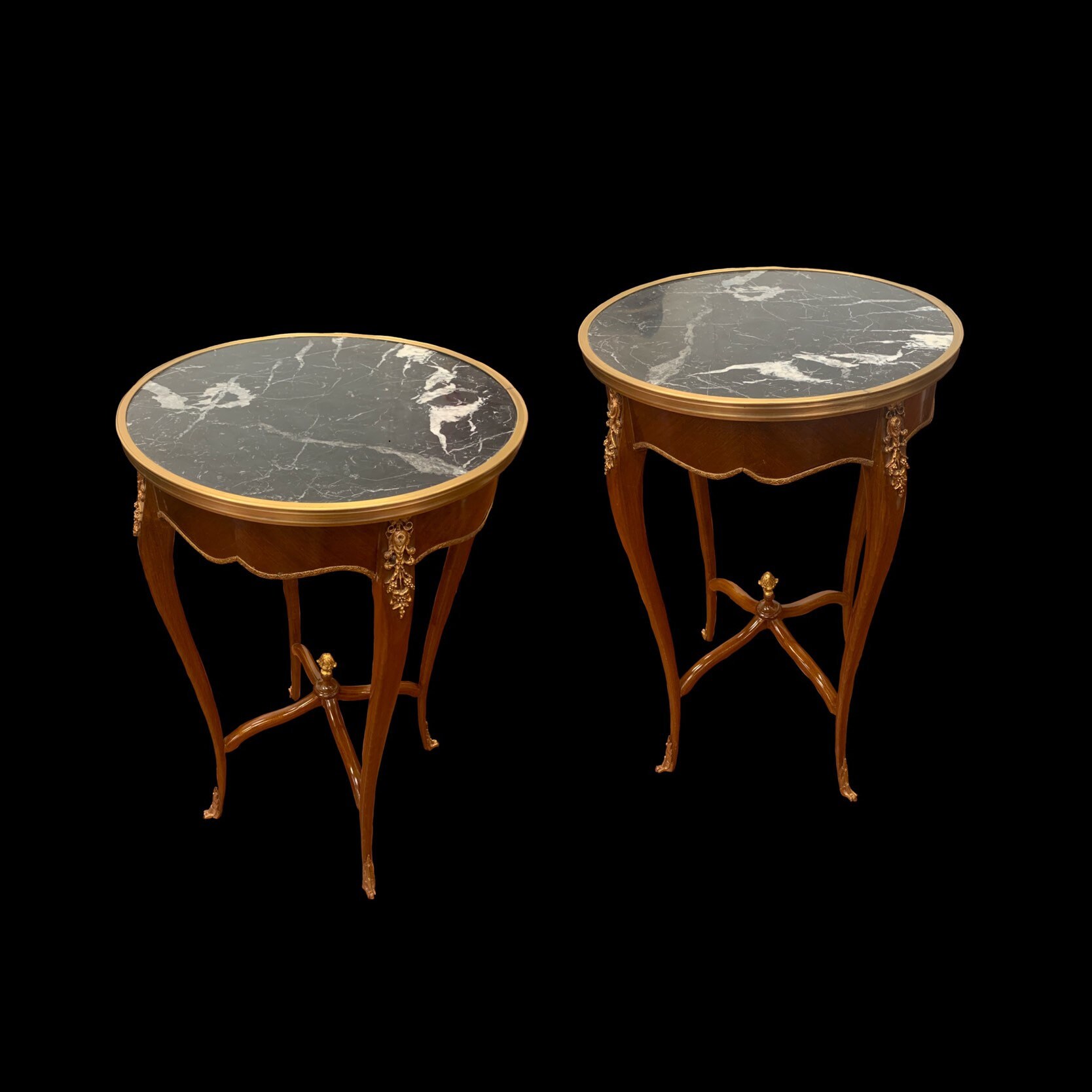 Classic Louis Xv French Style Accent Table With Inlayed Marble Top