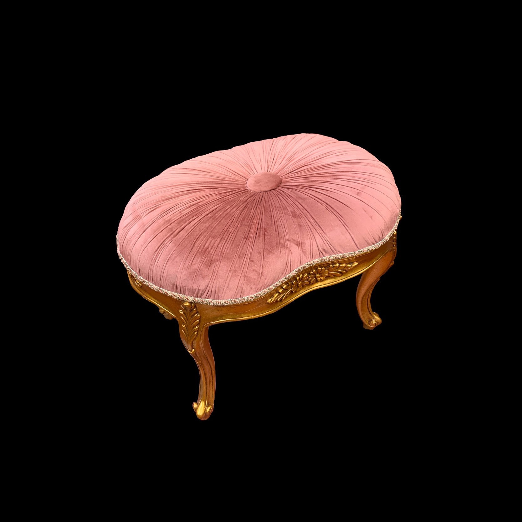 Sold French Style Ottoman Pleated Velvet Gold Leaf Finish
