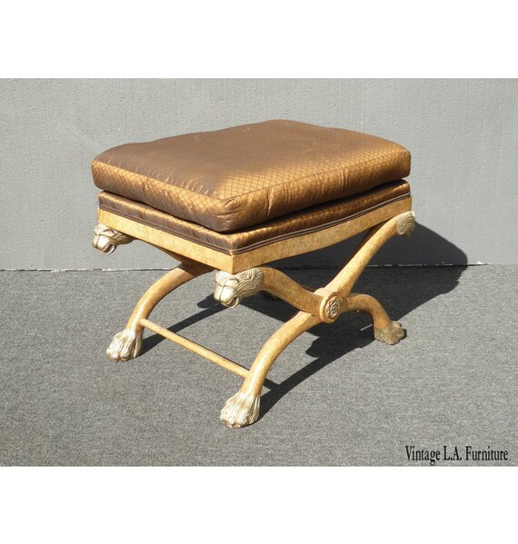 Vintage French Brown Bench Ottoman By Marge Carson W Lion Head Etsy