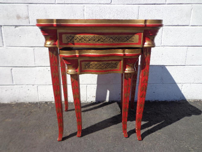 2 Nesting Tables Red Traditional Asian Country French Accent Side