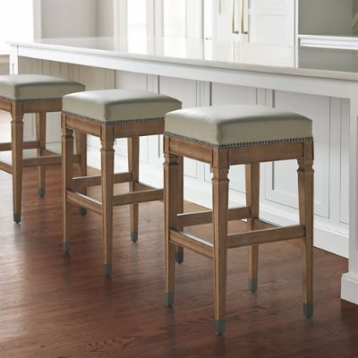 Frontgate counter stools. Backless stools save space and offer an ideal short term seating solution for traditional or contemporary areas. Its regal bearing is achieved through a curved crest rail and arms english inspired turned legs and deep red oxblood leather. Pecan ebonized black mahogany or white finish.