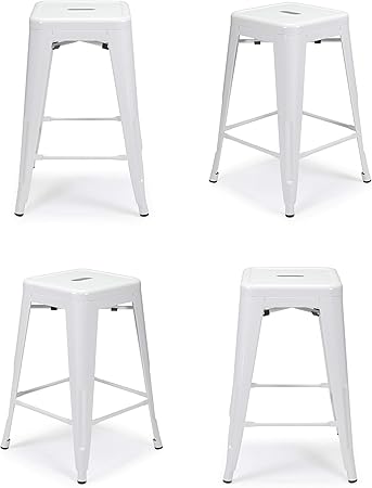 Amazon Com Set Of 4 Milani Metal Bar Stools 24 White Stack Able