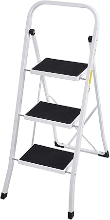 Charahome 3 Step Ladder Step Stool Folding Portable Ladder Steel