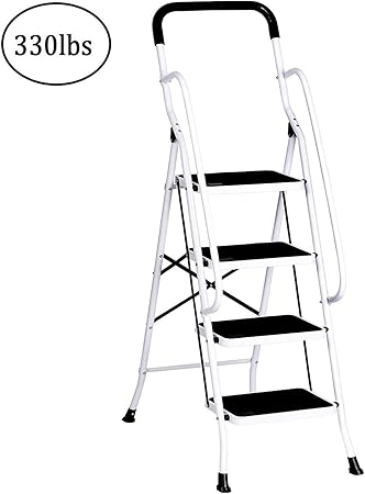 4 Steps Folding Ladder Step Stool W Hand Grip 330 Lbs Capacity