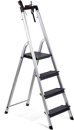 Delxo Lightweight Aluminum 4 Step Ladder With Tool Tray Folding