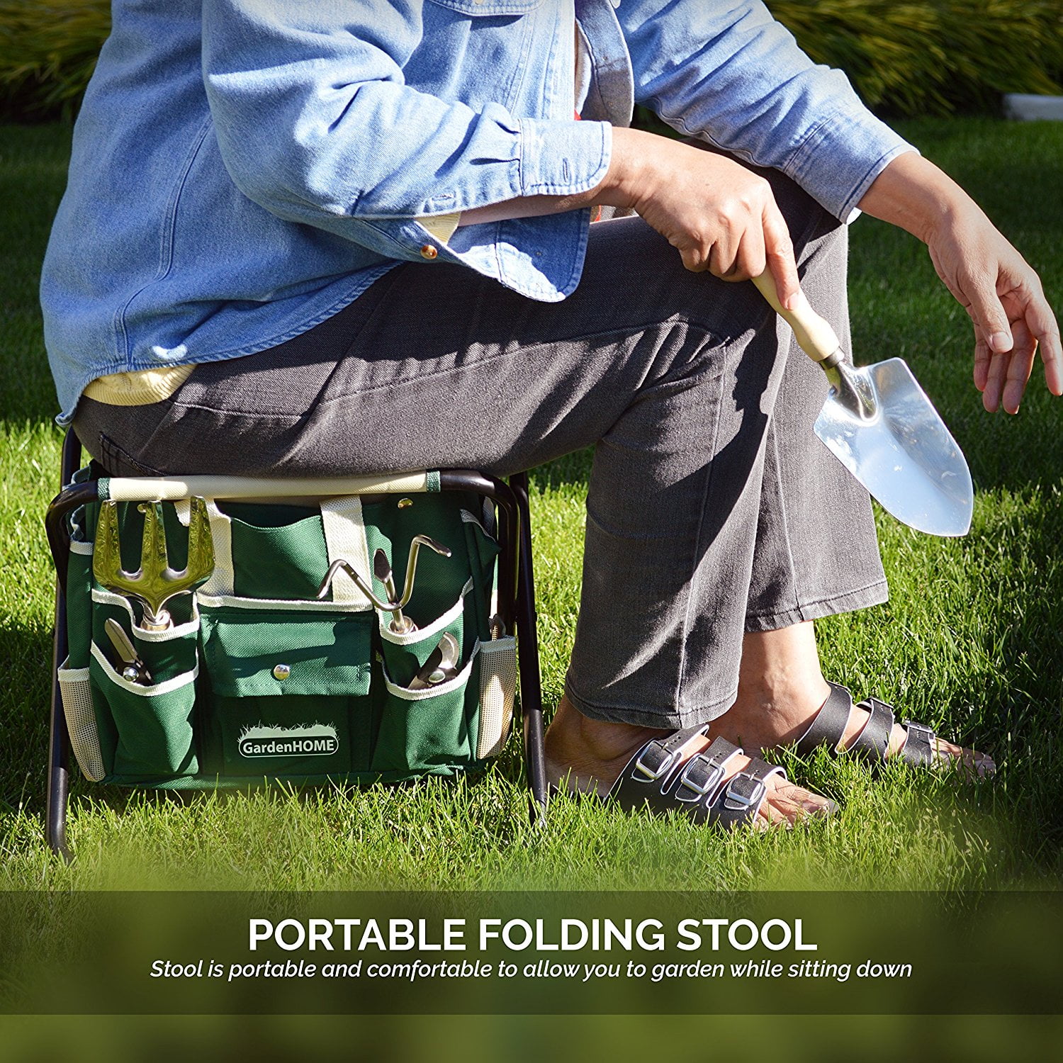 Gardening just got more relaxing with the gardenhome 7 piece garden tool set including folding stool with tool bag. The gardenhome 10 piece garden tool set includes. Of course the extreme portability of gardenhome folding stool provides the user with the option of using the chair to go on various outdoor activities such as fishing or a hike.