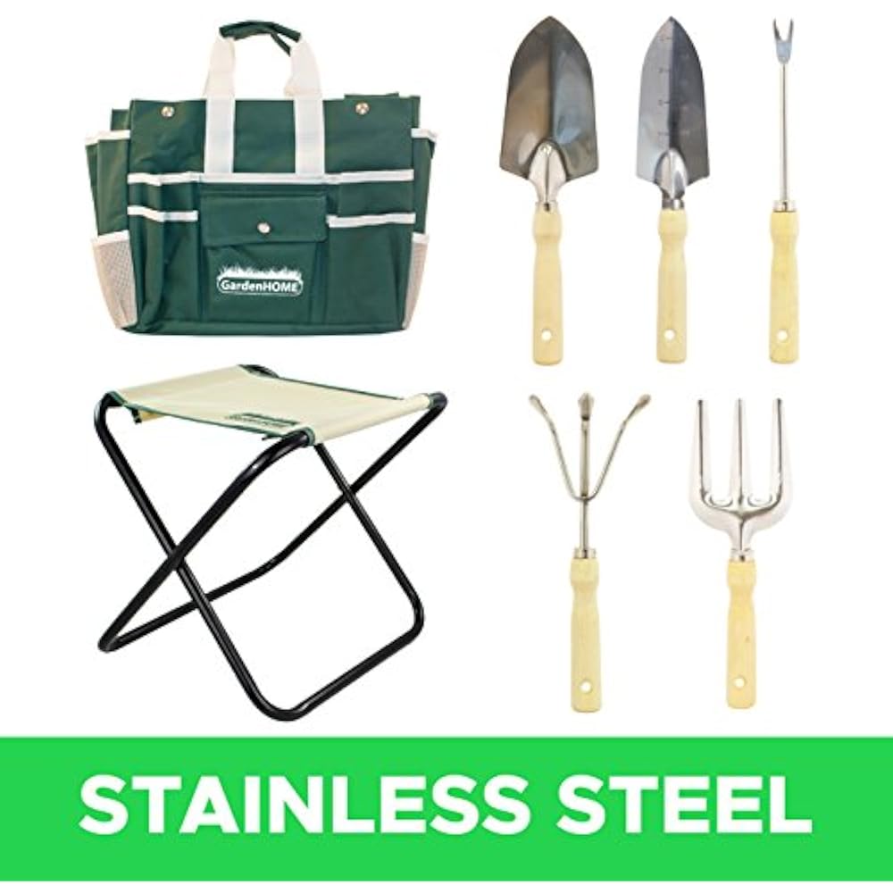 Gardenhome garden tools set 7 piece stainless steel heavy duty kit with folding stool and bag green tacklife 6 piece stainless steel heavy duty garden tools set with non slip rubber grip storage tote bag outdoor hand tools garden gift black and orange ggt4a.