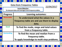 Maths Worksheet Mean Mode From Frequency Tables Teaching Resources