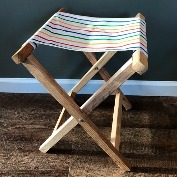 Vintage Camping Chair Folding Seat Wood Canvas Foot Rest Stool Etsy