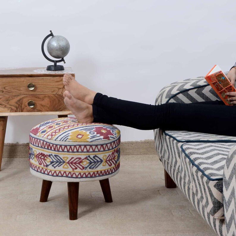 Wooden Foot Rest Pouf Stool Furniture Upholstery By Embroidery Rug