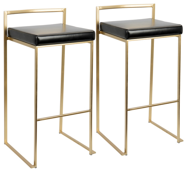 2 Lumisource Fuji Gold Black Pu Bar Stools The Classy Home