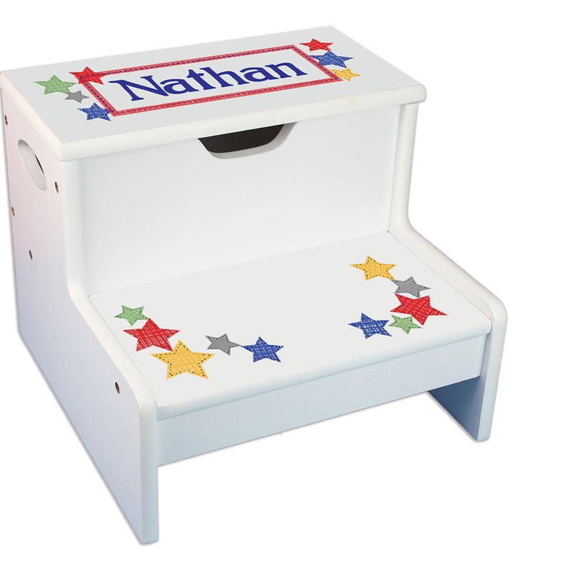 Primary Color Child S Step Stool Storage Drawer Boy S Etsy