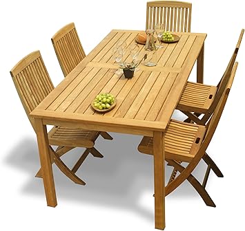 Tranquility 47in Teak Dining Table And 6 Solid Teak Folding Chair