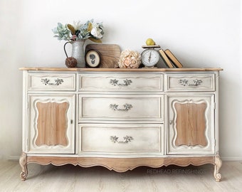 French Provincial Sideboard Buffet Table In White With Natural Oak