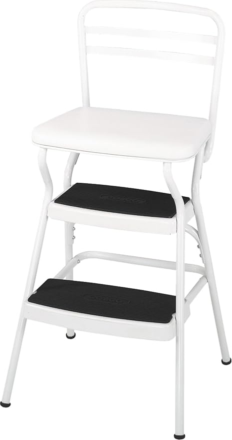 Amazon Com Cosco White Retro Counter Chair Step Stool With Lift