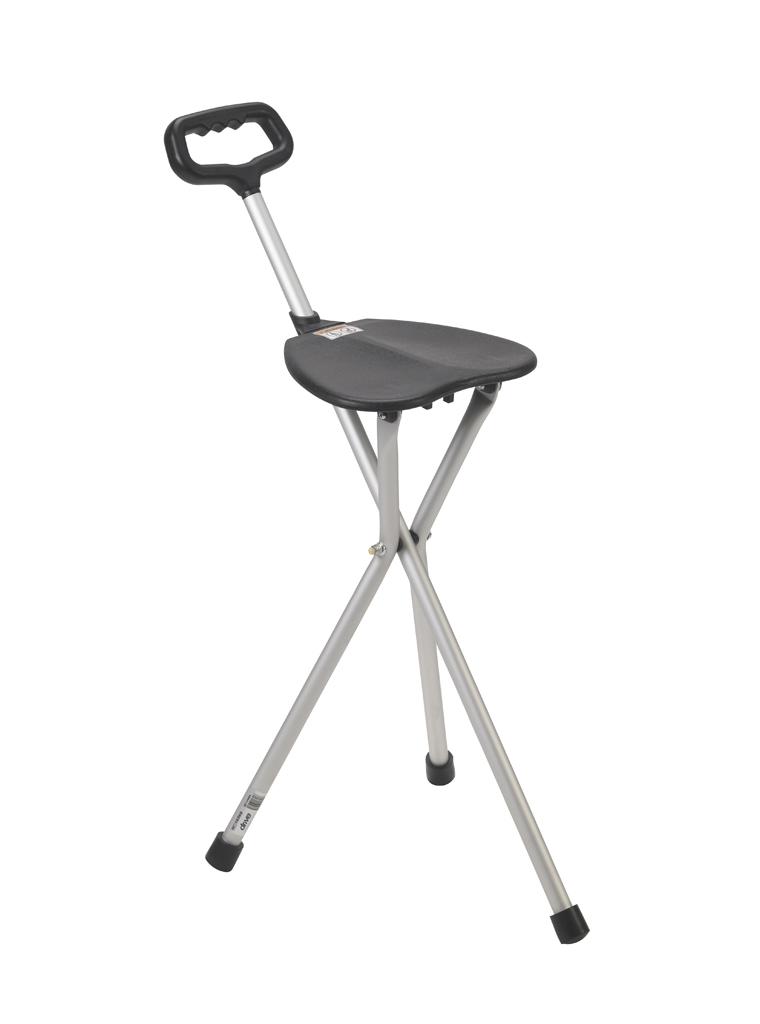 Drive Stainless Cane Seat Folding Walking Stick Chair Tripod Stool