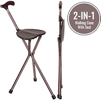 One of the walking cane with seat heavy duty that could be a godsend for you especially if you have trouble standing for long is the stadium portable walking chair. Aluminum walking canes are typically adjustable. It folds easily and being a tripod balances weight evenly to avoid you falling over.