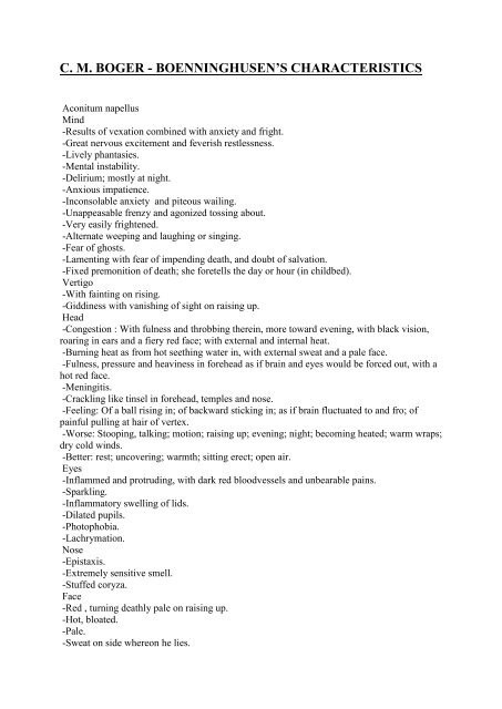 C M Boger Boenninghusen S Characteristics