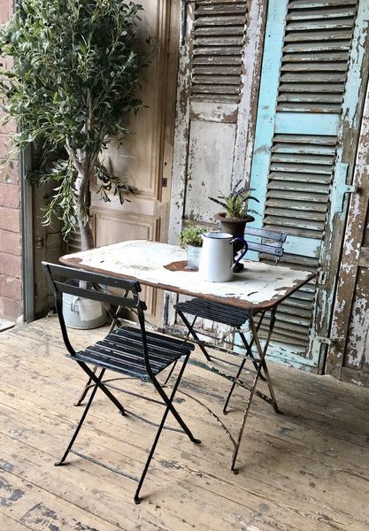 Rustic Vintage French Bistro Table And Two Folding Chairs Vinterior