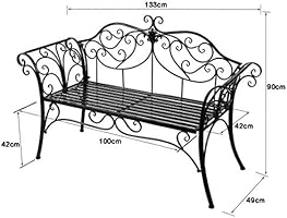 Amazon Com Antique Black Metal Garden Bench Chair 2 Seater For