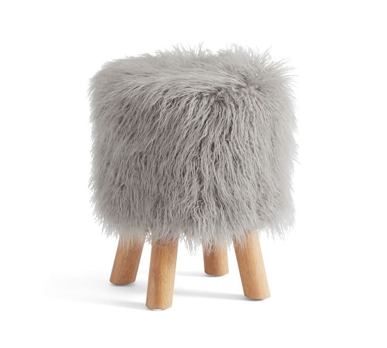 Tavi Mongolian Faux Fur Stool Gray Chrome Pottery Barn