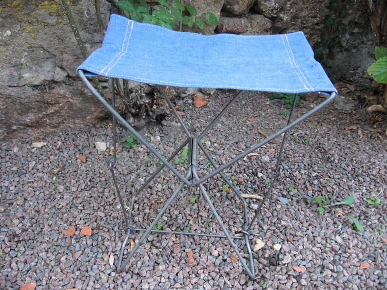 Folding Fisherman Stool Folds Flat With Jean Canvas Seat Etsy