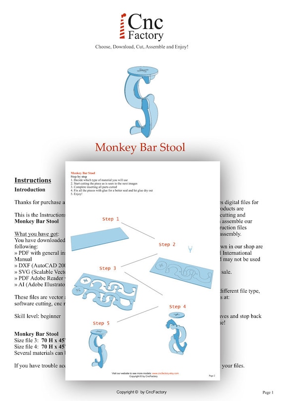 Monkey Bar Stool Cnc Template Cutting Plans Wooden Step Etsy
