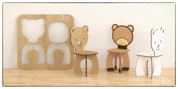 Bear Chair Cnc Template Cutting File Wooden Cardboard Step Etsy