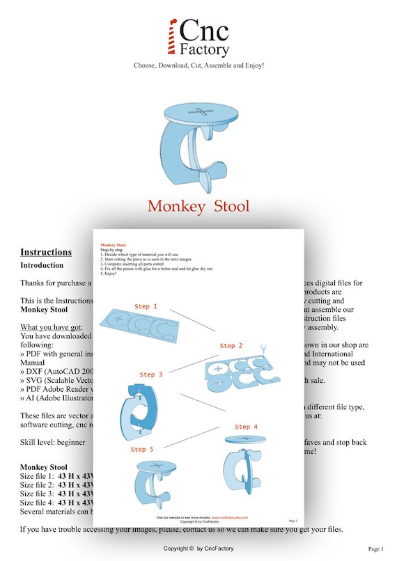 Monkey Stool Cnc Template Cutting File Wooden Step Stool Etsy