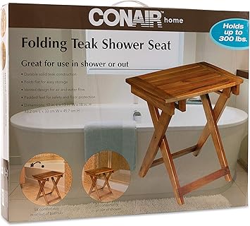 Amazon Com Conair Home Folding Teak Shower Seat Beauty