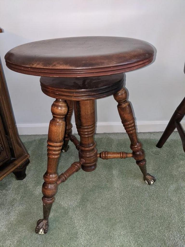 Antique piano stool ball claw foot wooden swivel glass clawfeet vintage organ beautiful wood tones. Swivels to adjust up and down. And you can stack most of our stools away or just push them under the table when its time to show off your latest dance moves.