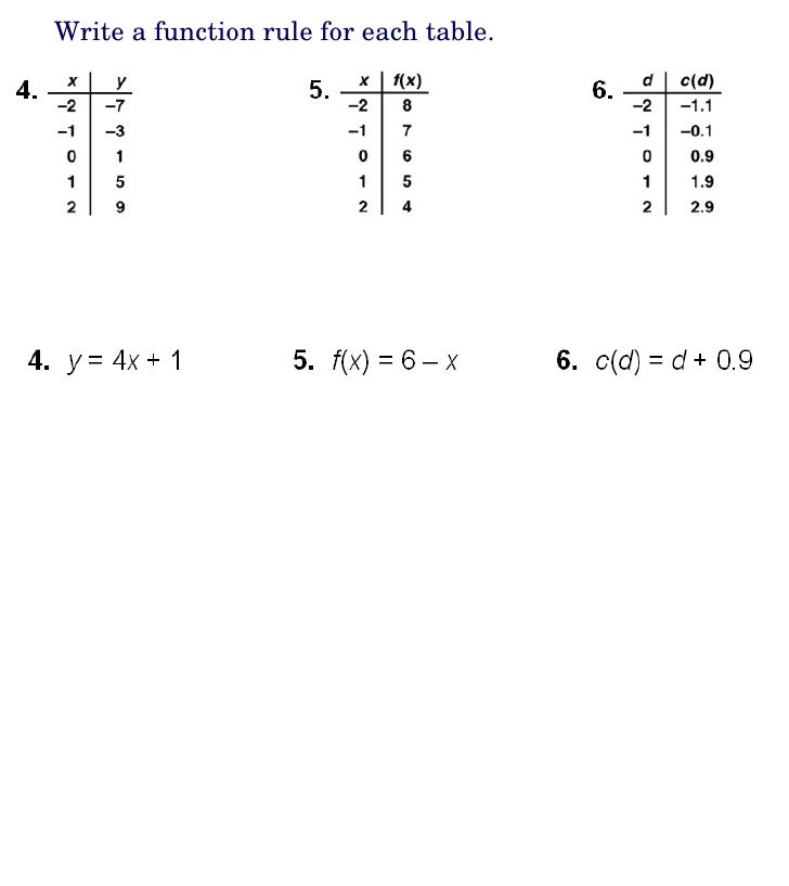 Writing A Function Rule Worksheet