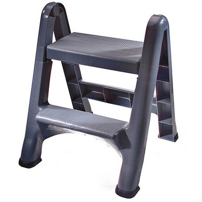 2 Tier Step Stool Lightweight Fold Down Plastic Gray Up To 300 Lbs