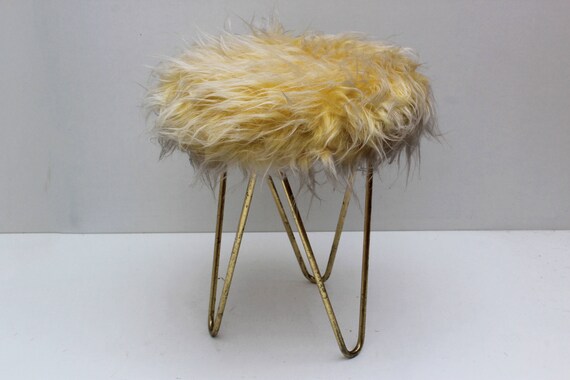 Vintage 60s Authentic Firm Funky Hairy Tripod Stool Dressing Etsy