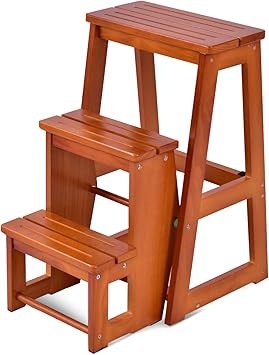 Amazon Com Patcharaporn Wood Step Stool Folding 3 Tier Ladder