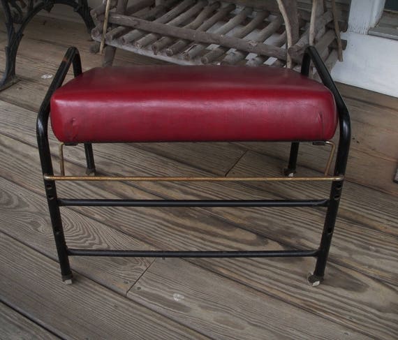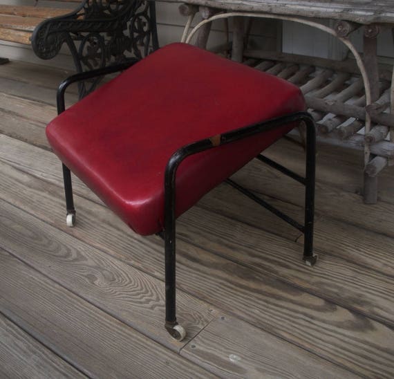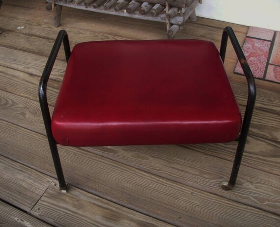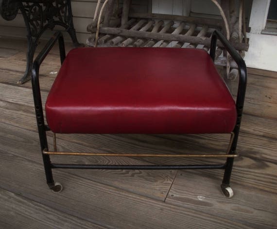 Vintage Dark Red Vinyl Leg Lounger Metal Footstool On Casters Etsy