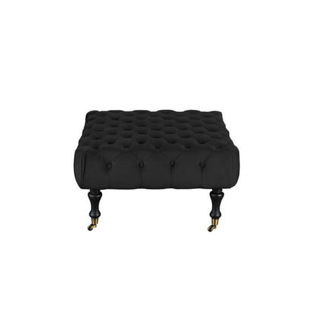 Vintage Style Tufted Black Velvet Footstool With Casters Walmart Com