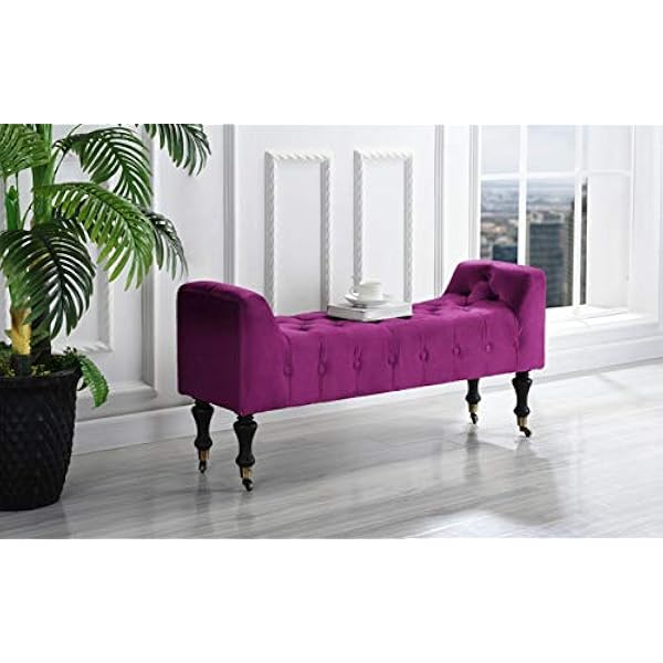 Traditional Upholstered Bench Velvet On Casters Marbury