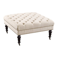 Shop Belleze 33 Inch Round Tufted Linen Ottoman Large Footstool