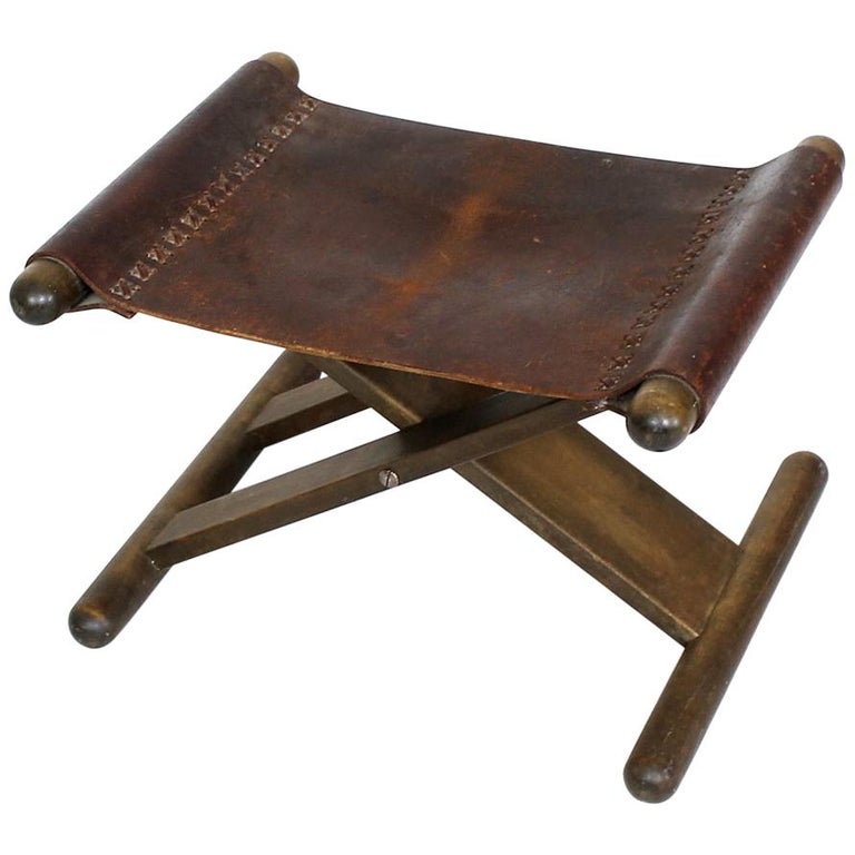 Wenge Wood And Leather Folding Guldhoj Stool By Poul Hundevad