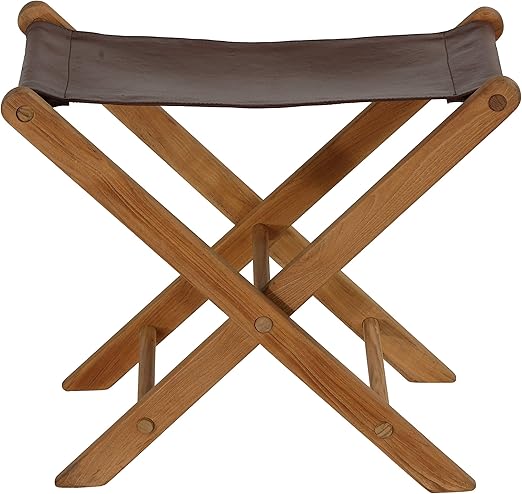 Amazon Com Bare Decor Davie Teak And Leather Folding Accent Stool