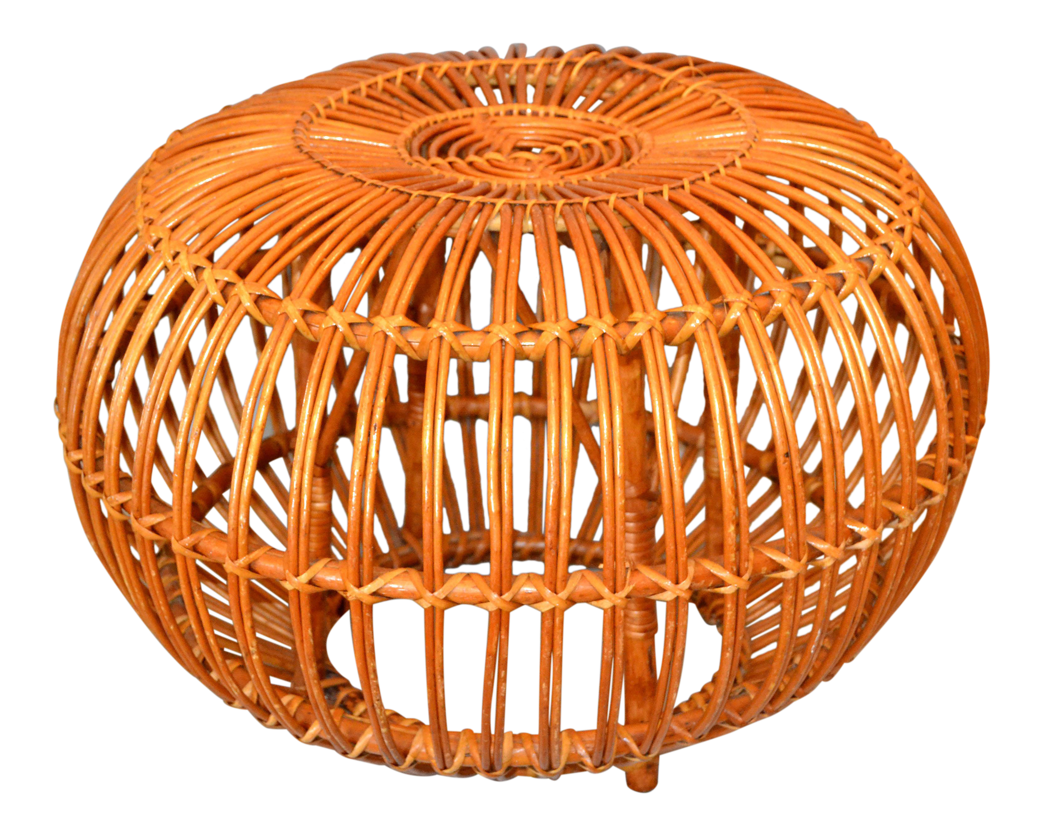 Vintage Franco Albini Hand Woven Rattan Wicker Ottoman Pouf